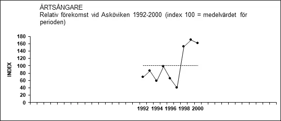 Punkttaxeringar vid Asköviken 1992-2000 indikerade en långsiktig ökning som är statistiskt nästan signifikant (P<0,10; rs=+0,703; Thomas Pettersson, opubl.).