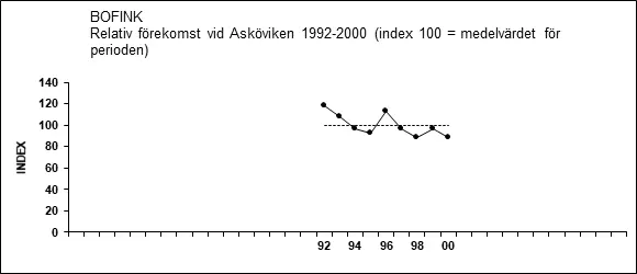 Punkttaxeringar vid Asköviken 1992-2000 visade en negativ tendens som är statistiskt nästan säkerställd (rs=˗0,723, P<0,10; Thomas Pettersson, opubl.).