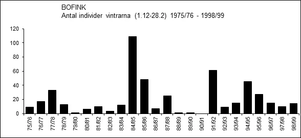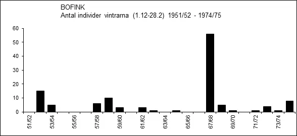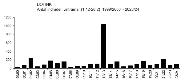 Vinterfynd av bofink har gjorts praktiskt taget varje vinter sedan början av 1970-talet. Antalet individer en enskild vinter kan dock variera rätt stort, men en tendens till ökad frekvens efter millennieskiftet är tydlig. Vintern 2012/13 var uppenbarligen särskilt gynnsam för övervintrande bofinkar och sammanlagt 1 031 ex. bokfördes. Den vintern sågs också ett par exceptionellt stora ansamlingar för att vara vintertid: