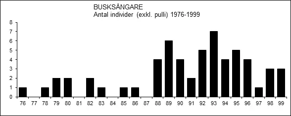 Mediandatum för första observation under perioden 1976-2024 är den 4 juni. Nitton gånger har busksångare noterats före den 1 juni. Den på året senaste iakttagelsen gjordes vid Grythytteviken i Grythyttan den 16 juli 2022 (Västmanlands rapportkommitté).