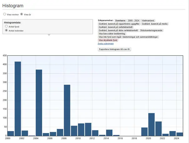 2001 295 str. (S) Hagaberg, Frövi, i Näsby 6.10 (Andreas Sandberg, opubl.).