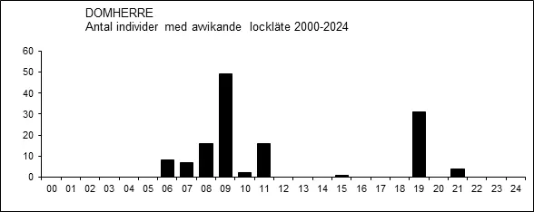 Minst 33 fynd av domherrar med avvikande lockläte, det så kallade ”trumpetlätet”, har rapporterats. Merparten av fynden har gjorts på hösten och dessa fåglar misstänks ha ett östligt ursprung.