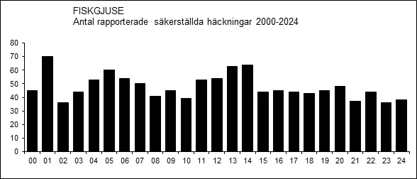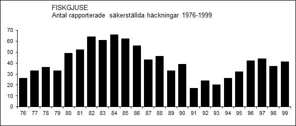 Uppgifter om fiskgjusens häckningsresultat föreligger från en rad undersökningar, se tabell.