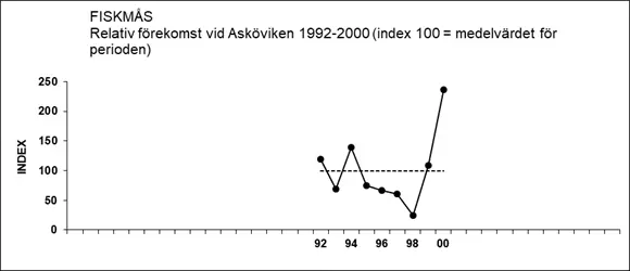 Punkttaxeringar vid Asköviken 1992-2000 visade stora variationer i förekomsten av fiskmås men ingen tydlig trend.