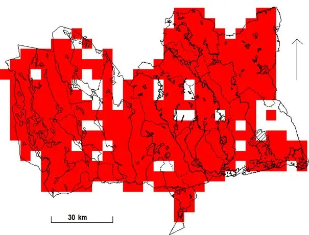 En del inventeringsdata från 1980-talet föreligger från Västmanland, men som uppvisar en stor spridning av täthetsvärden. Tillgängliga uppgifter sammanfattas i tabellen nedan.