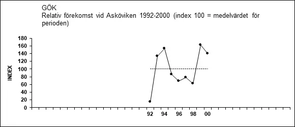 Punkttaxeringar vid Asköviken 1992-2000 visade rätt stora variationer mellan år, men möjligen med en ökande tendens (Thomas Pettersson, opubl.).