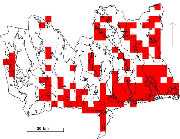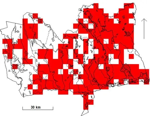 2017 1 ♂ Södra Ås i Nora 28.1-5.2 (Anders Carlberg, opubl.).