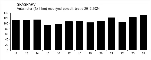 Gråsparven är en stannfågel och några fåglar som har bedömts som sträckande har inte rapporterats under perioden 2000-2024.
