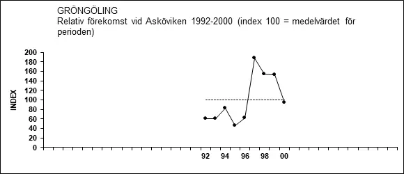 Vid linjetaxeringar vid Asköviken vintern 1975/76 (13 gånger; 23 november – 21 februari) var gröngölingen den i särklass mest observerade hackspettsarten, t.ex. registrerades drygt tre gånger så många individer som av större hackspett (Lars Lindell 1976).
