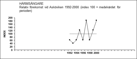 Punkttaxeringar vid Asköviken 1992-2000 indikerade en långsiktig ökning som är statistiskt nästan signifikant (P<0,10; rs=+0,656; Thomas Pettersson, opubl.).