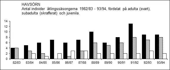 I början av 1960-talet betraktades havsörnen som en ”årsviss vintergäst kring Ängsö” och ”vintern 1961 gästades trakten av tre ex.” (Hans Avelin m.fl. 1962). Under 1960-talet och i början av 1970-talet tycks havsörnen ha uppträtt regelbundet vintertid, särskilt i anslutning till Mälaren. Några nämnvärda observationer från den tiden: