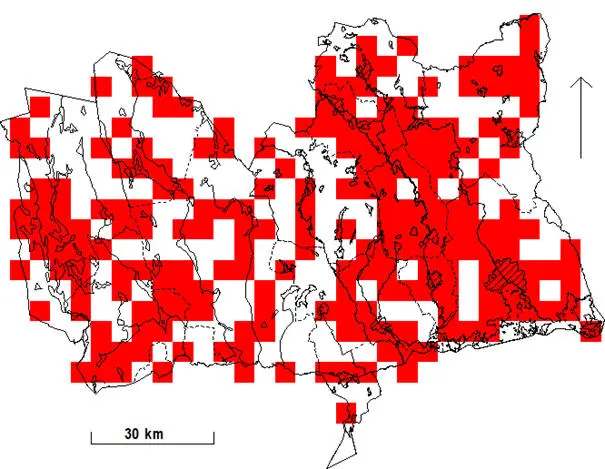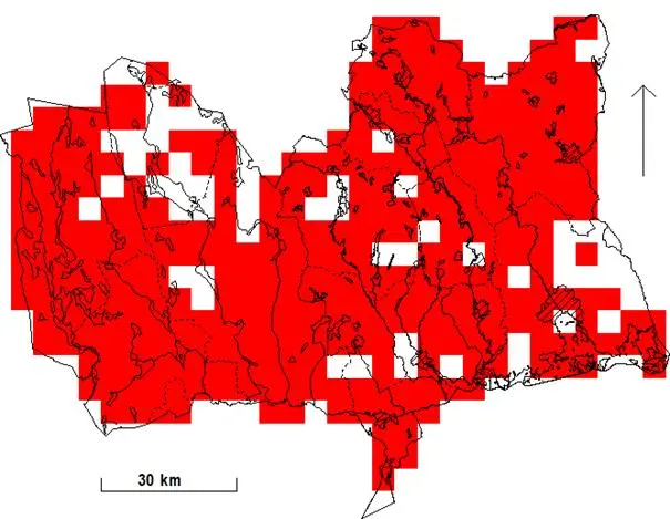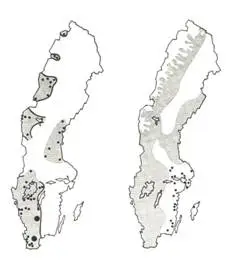 Kartor i Kai Curry-Lindahl (1959-63, s. 1943) visade utbredningen i Sverige 1922 respektive 1958: