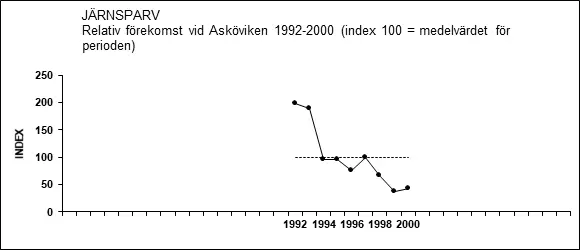 Punkttaxeringar vid Asköviken 1992-2000 visade en statistiskt säkerställd (P<0,02, rs=˗0,896, n=9) negativ trend (Thomas Pettersson, opubl.).