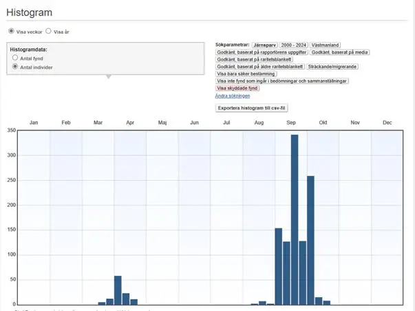 Vinterfynd (januari, februari, december) har gjorts i genomsnitt varannan vinter under perioden 2000-2024: