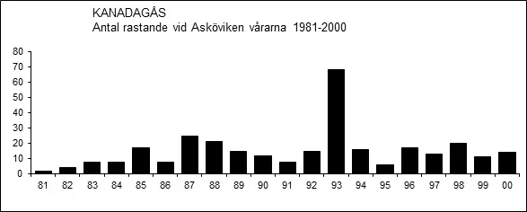 Så gott som dagliga räkningar vid Asköviken vårarna (april-maj) 1981-2000 visade ingen långsiktig förändring av antalet (Thomas Pettersson, opubl.).