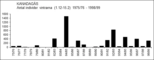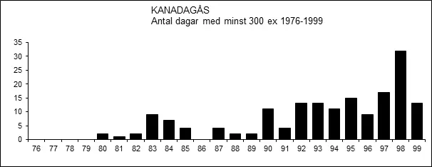 1975/76    ”Kanadagås sågs vid Gnien [Ramnäs] 3.1…” (Lars Lindell 1976c).