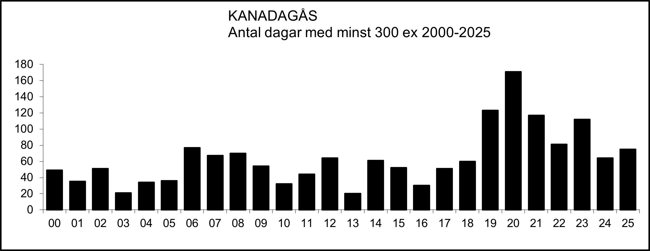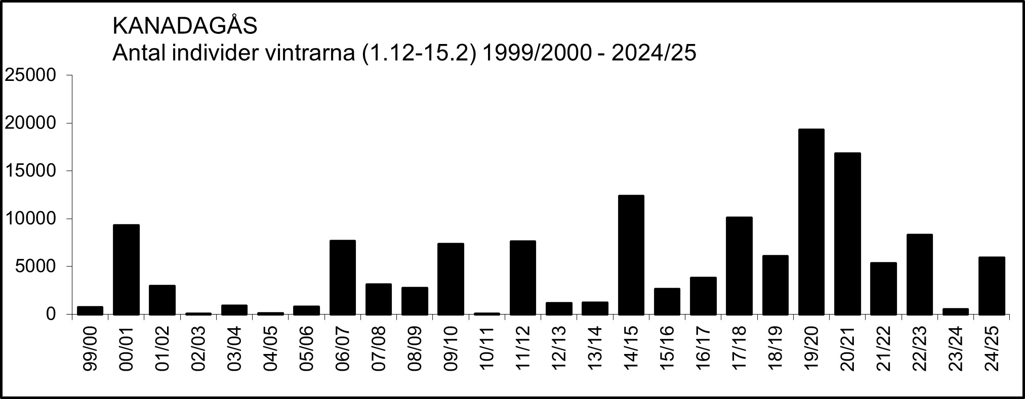 Lokaler med minst 300 rastande kanadagäss vid något tillfälle 2000-2025.