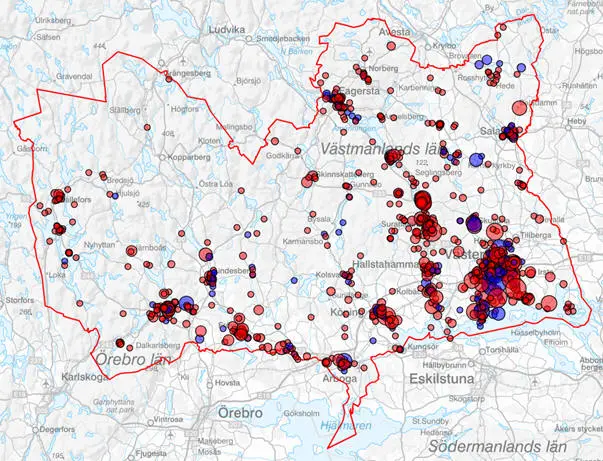 1920? ”Säkert förekommande ehuru ej allmän enl. O. M. Floderus; Wästerås stad, vintertiden enl drätseldirektör Öberg; Köpingtr: allmän enl E Råberg” (lektor O. M. Floderus kartotek, förvarat i Västerås stadsarkiv).