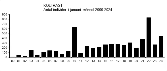 Vintrarna 2009/10 och 2021/22 tycks båda ha varit ovanligt gynnsamma för övervintrande koltrastar i Västmanland, men överlag ses en ökande frekvens sedan millennieskiftet.