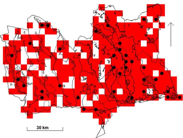 1969 ”Arten ses tämligen regelbundet i landskapets norra och nordöstra delar.” (Hans Avelin 1969).
