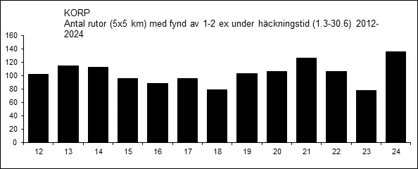 Korpen häckar numera sparsamt i hela landskapet efter att ha utvidgat sin utbredning till att från och med 1980-talet även omfatta Mälarområdet.