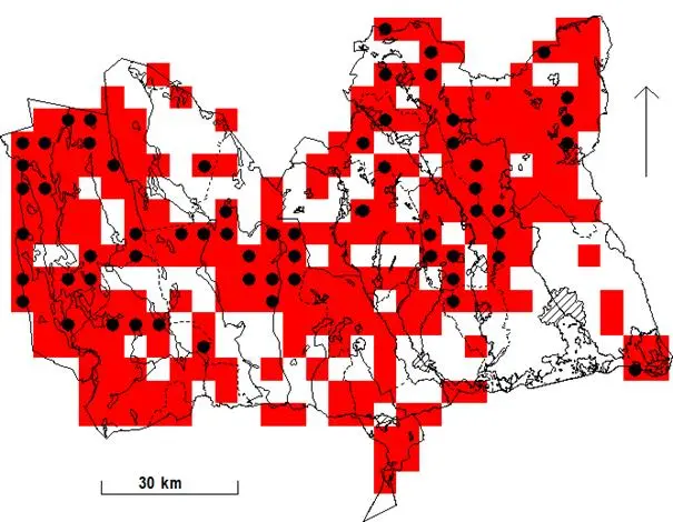Häckningsuppgifter från 1960-talet och 1970-talets första hälft, samtliga från Skogslåglandet och Bergslagen: