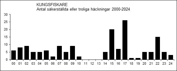 –1958 ”Kungsfiskaren skall ha visat sig för några år sedan vid Sörkvarn [Svedvi], men häckning har inte säkert kunnat konstateras” (Harald Wedérus 1958).