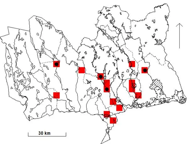 - En bounge som märktes vid Norrköping i Östergötland 1991, kontrollerades häckande (♂) vid Järleån i Nora både 1992 (RC/Å 1992:103) och 1993 (RC/Å 1993:103).