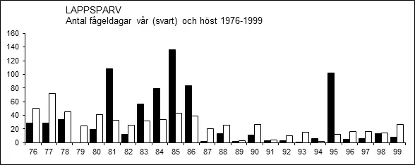 Under 1960-talet och första hälften av 1970-talet rapporterades lappsparvar regelbundet och i allt högre antal. Större (minst 10 ex.) ansamlingar och sträcksummor före 1976: