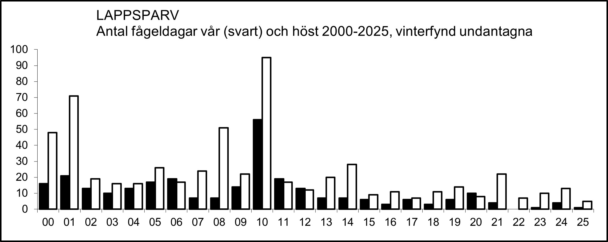 Lappsparven uppträder numera som en sparsam genomflyttare vår och höst. Antalet rapporterade individer varierar mellan åren, men en negativ utveckling är tydlig sedan mitten av 1980-talet.