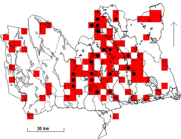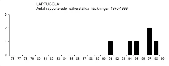Under perioden 1976-1999 har sammanlagt sex (6) säkerställda häckningar rapporterats. Den första häckningen ägde rum år 1991 i Gunnilbo.