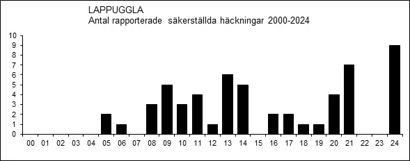 Lappugglan häckar sparsamt i Skogslåglandet och Bergslagen men med en svagt ökande frekvens efter 1990-talet. Under perioden 2000-2024 har sammanlagt 55 säkerställda häckningar rapporterats, sedan 2008 nästan årligen, som mest nio (9) ett enskilt år (2024). Utöver det har lappugglan under samma period rapporterats under häckningstid och i lämplig häckningsmiljö från ytterligare drygt 80 lokaler. Dessa är också koncentrerade till Skogslåglandet, men i några fall rapporterad också från Bergslagen och i ett fåtal fall från Mälarområdet.