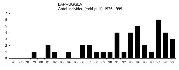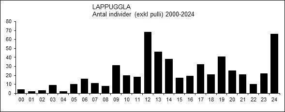 Övriga årstider ses lappugglan regelbundet och allt oftare. I synnerhet hösten 2012 var uppträdandet relativt talrikt.