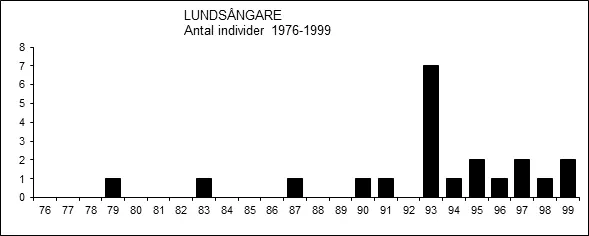 Därefter fortsatte lundsångaren att vara ytterst sällsynt, men från och med mitten av 1990-talet uppträdde den plötsligt årligen, bland annat med så många som sju (7) individer år 1993.