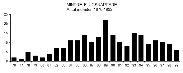 Mindre flugsnapparens höstflyttning kulminerar i början av september. Mediandatum för sista höstobservation är för perioden 1976-2024 den 6 september. Undantagsvis ses den så sent som i början av oktober och det senaste fyndet under perioden 2000-2024 är följande: