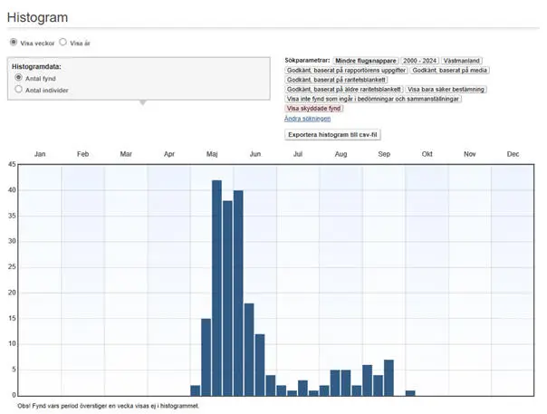 1967 1 ♂ Stora Almö i Västerås-Barkarö 29.5 (Göran Andersson, opubl.).