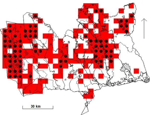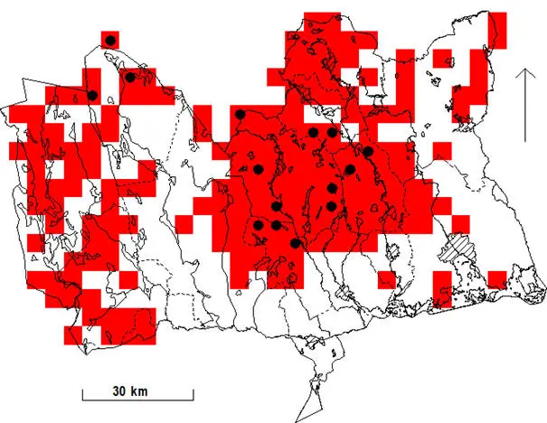I de välbevakade områdena Ramnäs och Sura har antalet häckningar, inklusive troliga häckningar (i praktiken ropande hannar), under perioden 1995-2000 varierat mellan 1 och 57. Medelvärdet är 21 och medianen 11½. Områdets areal är 344 km², vilket innebär en mediantäthet av 3,3 par/100 km². Applicerat på hela Skogslåglandet och Bergslagen skulle detta innebära en medianpopulation i landskapet på cirka 200 par. Riktigt goda år kan populationen lokalt uppenbarligen vara fem gånger större än medianen.