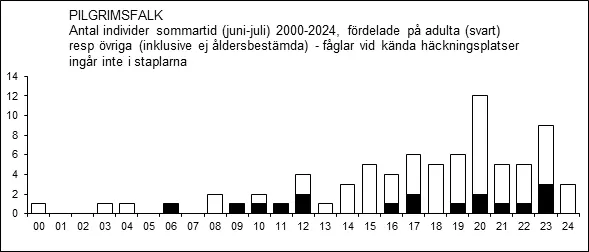Sommarfynd (juni-juli) har gjorts allt oftare efter millennieskiftet och fynd föreligger från 21 av säsongerna 2000-2024. Några av fynden gäller adulta fåglar.
