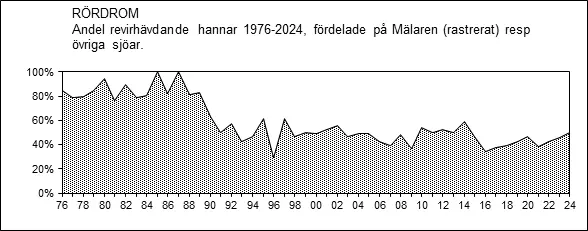 De sena vårarna 1985, 1986 och 1987 hördes de första rördrommarna så sent som den 27, 19 resp. 16 april. Mediandatum under perioden 1976-2023 för den först iakttagna rördrommen är den 27 mars. Rördrommarnas bölande upphör vanligen runt midsommar och är synnerligen ovanligt att få höra efter den 1 juli. På senare år finns möjligen en tendens till att revirhävdandet upphör tidigare på året, men detta återstår att analysera närmare.