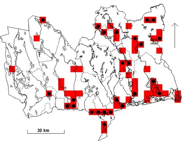 Lokaler med flera häckande par före år 2000 var följande: