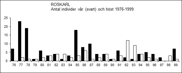 1952      ”En för dessa trakter celeber gäst uppenbarade sig i maj 1952. Det var en roskarl som stannade upp i viken, för att efter två dagar fortsätta sin resa, till för den lämpligare lokaler [Östersjön i Sura].” (Göran Lundqvist 1972).