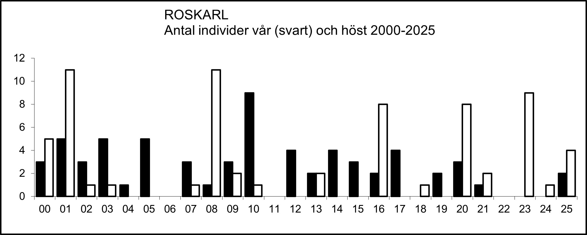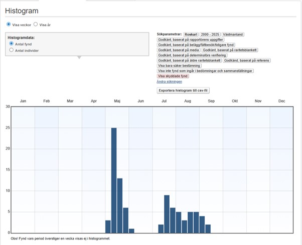Lokaler med fynd av roskarl under perioden 2000-2025.