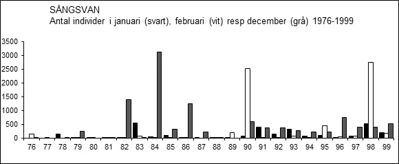 Ansamlingar av minst 1 000 rastande sångsvanar på enskilda lokaler före år 2000: