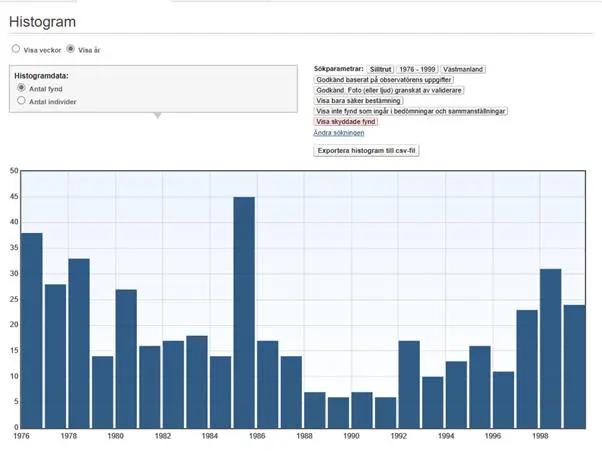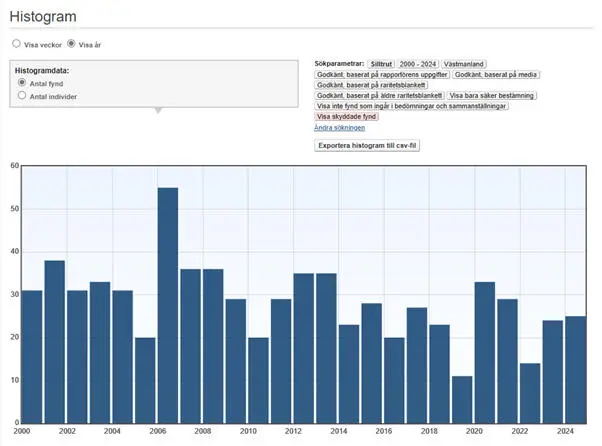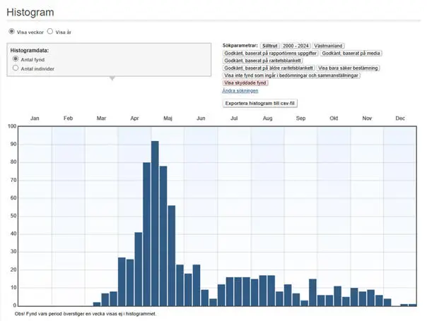 Dagssummor eller flockar på minst tio sträckande individer har inte noterats alls under perioden 2000-2024, vilket kan jämföras med hur det såg ut under 1970- och 1980-talen, se ovan under Historik