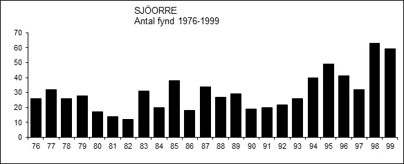 Antalet rapporterade fynd har otvivelaktigt ökat kraftigt de senaste tjugo åren. En fråga som då förstås infinner sig är om detta speglar verkligheten eller en ökad ornitologisk aktivitet och som kanske dessutom har blivit mer inriktad på att upptäcka rastande sjöorrar m.m. Den genomsnittliga flockstorleken har också ökat (rs=+0,699, n=8, P<0.10, Spearman rangkorrelation, tvåsidig) vilket indikerar att det ökade antalet rapporterade sjöorrar åtminstone till viss del motsvarar en faktisk ökning.