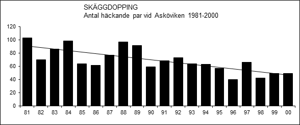 Flera uppgiftslämnare gör gällande att en kraftig minskning ägde rum under 1980- och 1990-talen och vid exempelvis Asköviken halverades beståndet i stort sett under nämnda tid. En heltäckande inventering av Lindesbergs kommun 1987-1989 gav vid handen 32 häckande par i 13 sjöar (Jan-Erik Malmstigen & Mats Andersson 1990), vilket innebar en halvering av kommunens bestånd jämfört med en motsvarande inventering 1977-1978 (Jan-Erik Malmstigen 1979). Arten saknades vid den senare inventeringen i åtminstone nio sjöar (Mats Andersson & Jan-Erik Malmstigen 1990). Vid Barkaröviken i Kungs Barkarö/Köping hade den 1983 minskat till cirka 20 par, jämfört med det minst tredubbla på 1960-talet (Thomas Pettersson 1989). Från ett par områden rapporterades samtidigt stabila eller till och med ökande populationer. Vid Södra Hörken i Grängesberg/Ljusnarsberg fanns i början av 1990-talet 15-20 par (DOF 1993, s. 150), vilket är i stort sett lika mycket som i mitten av 1970-talet. Från Västanfors och Västervåla skrev Leif Lejdelin (1984), att arten ”häckar med åtskilliga par i Kolbäcksåns sjösystem. Har märkbart ökat under senare år”.