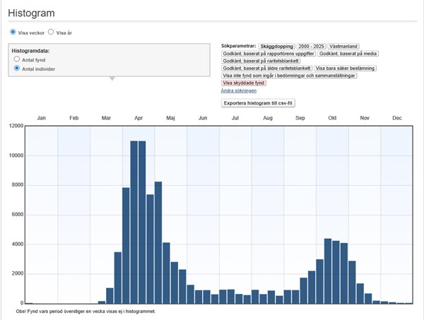 De största (minst 200 ex.) kända ansamlingarna under perioden 2000-2025: