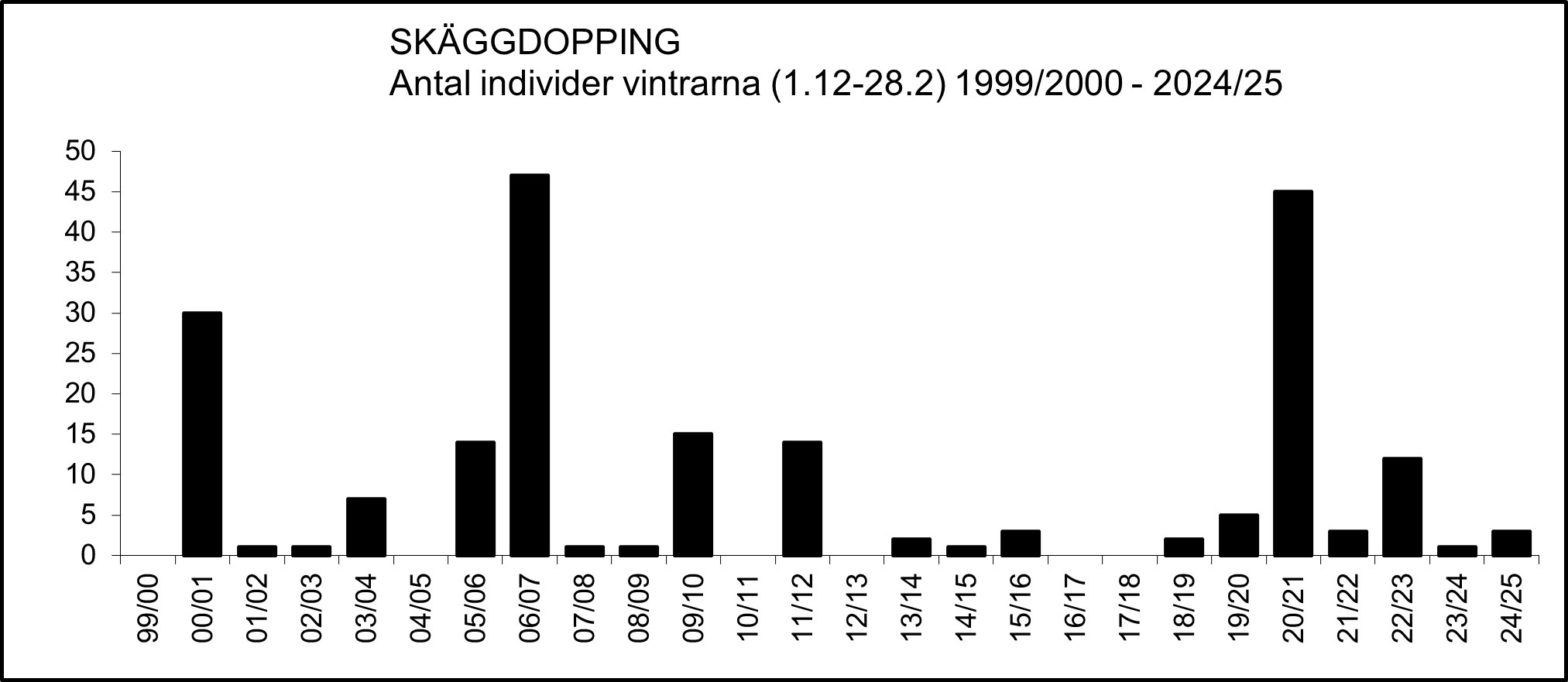 Före år 2000 är elva vinterfynd (1.12-28.2) kända, varav två gäller så gott som fullbordade övervintringar: