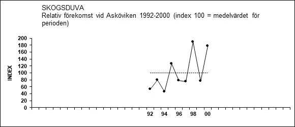 Punkttaxeringar vid Asköviken 1992-2000 visade rätt stora variationer mellan år, men innebar samtidigt en statistiskt nästan säkerställd (P<0,10, rs=+0,630) positiv trend (Thomas Pettersson, opubl.).