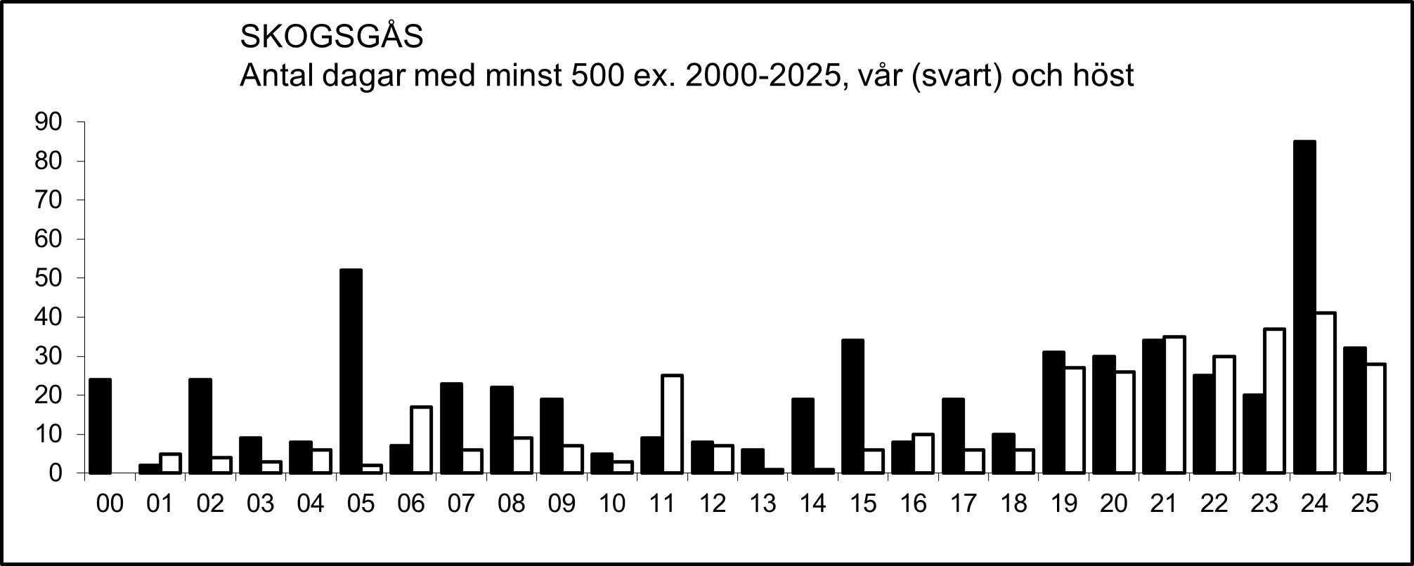 Åren 2018-2025 noterades höstrastande ansamlingar i samma storleksordning (minst 2 000 ex.):